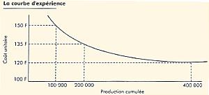 La théorie de la courbe d'expérience représente l'évolution des coûts unitaires par rapport à la production cumulée (l'expérience)